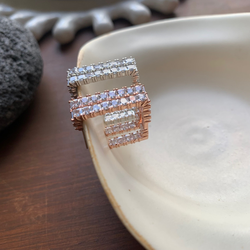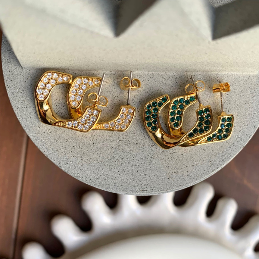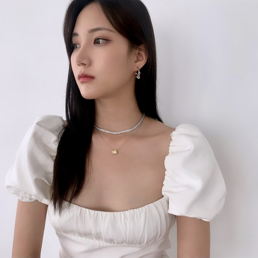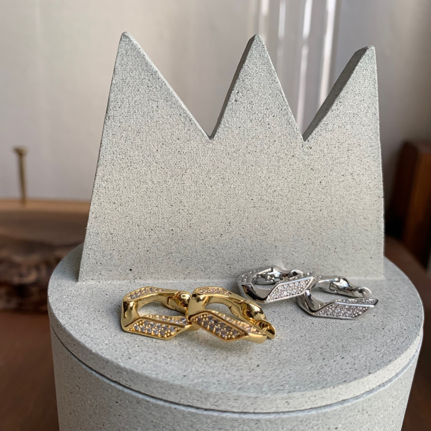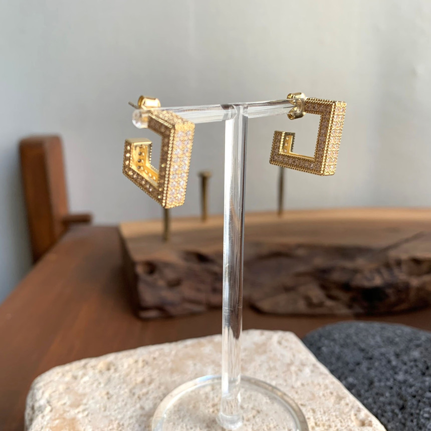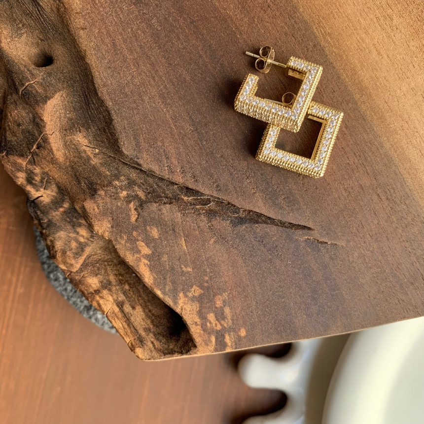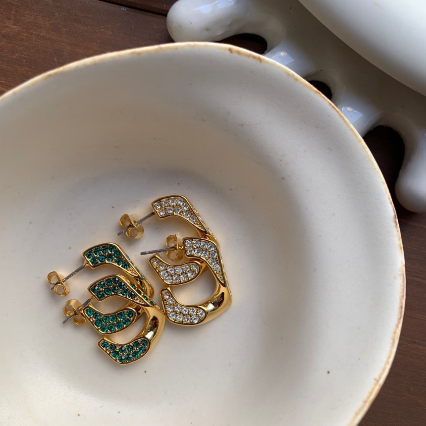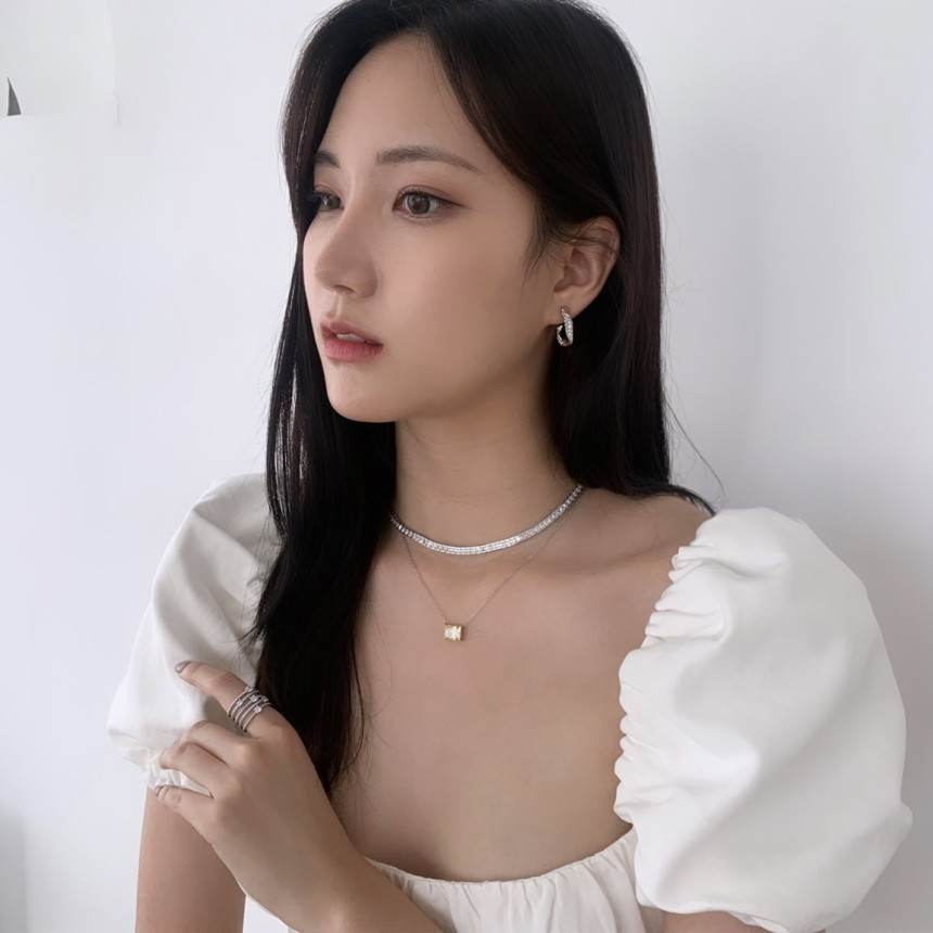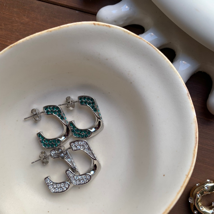 파베세팅큐빅사각링 귀걸이