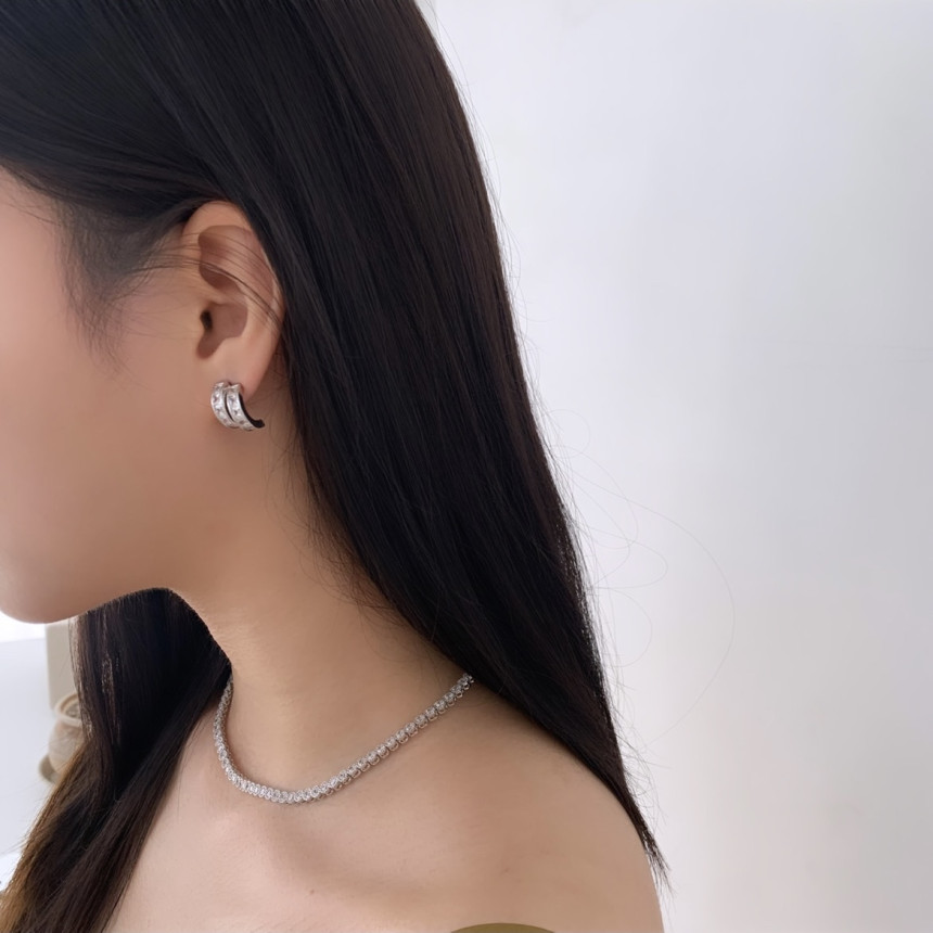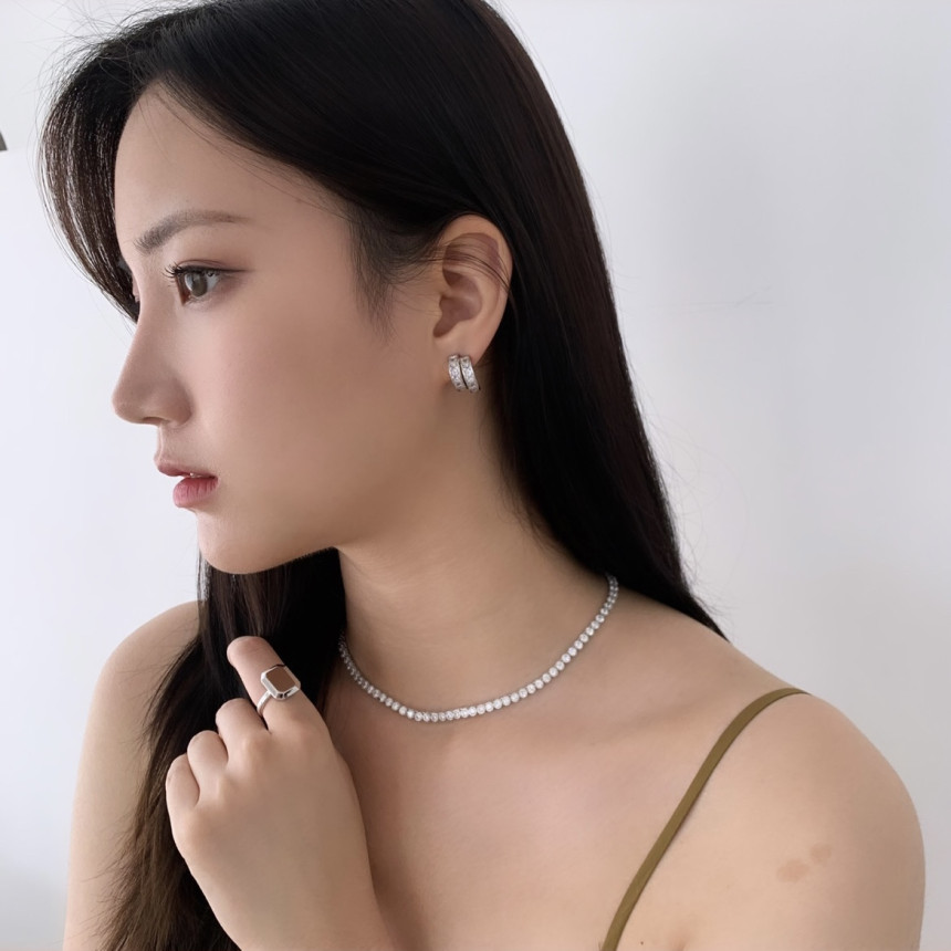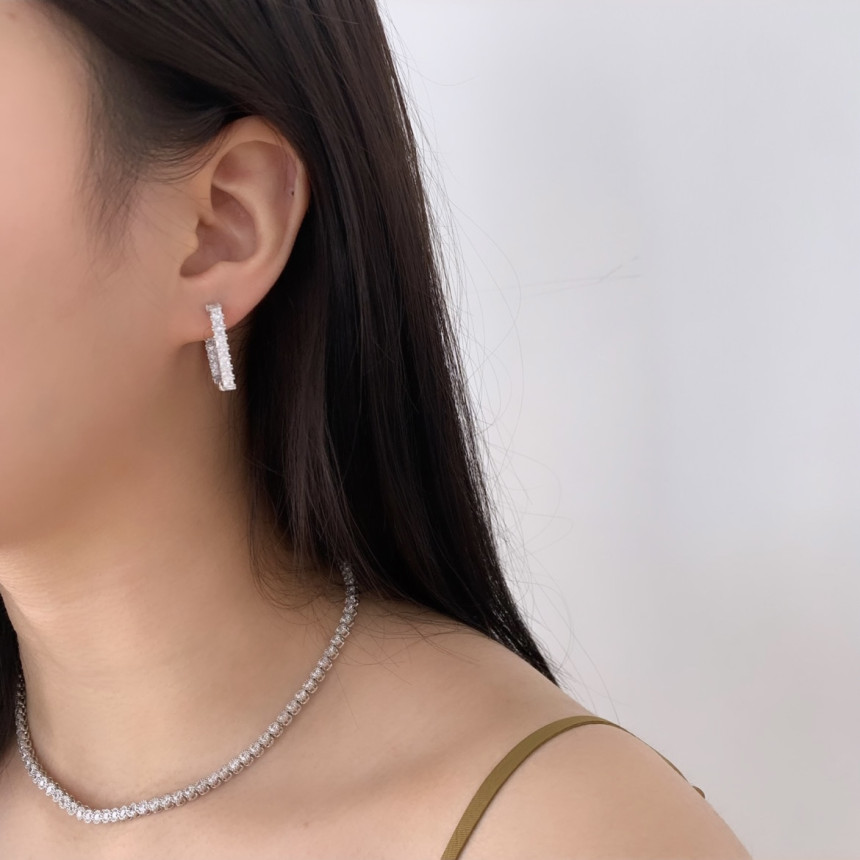 테니스 큐빅사각링 귀걸이
