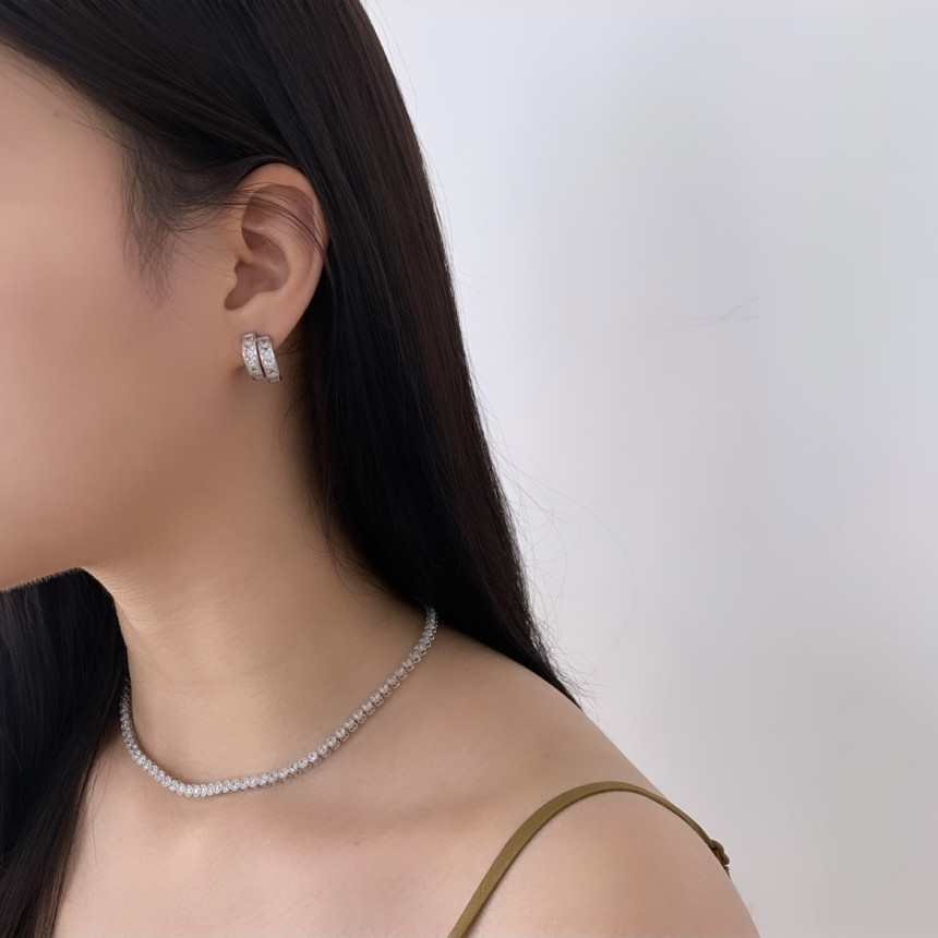 파베세팅2줄스퀘어큐빅링귀걸이