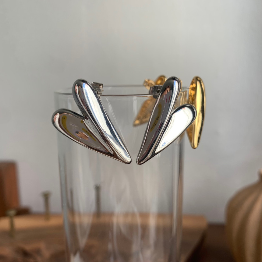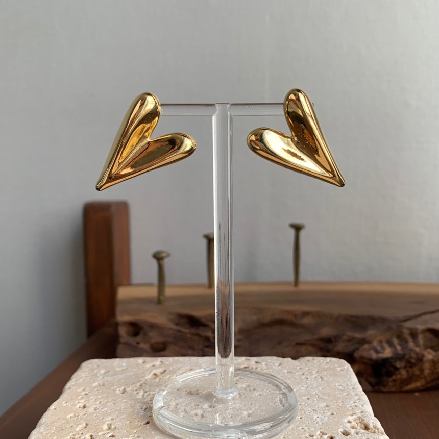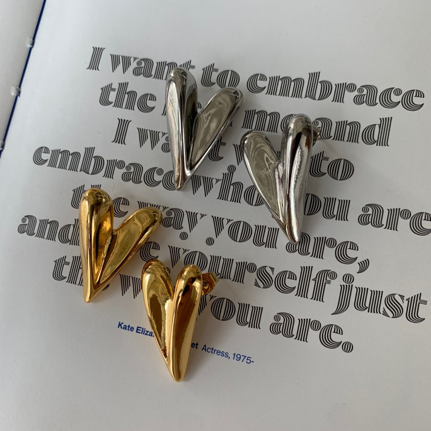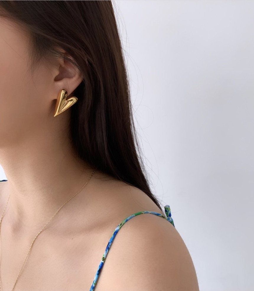 입체 하트 드롭 귀걸이