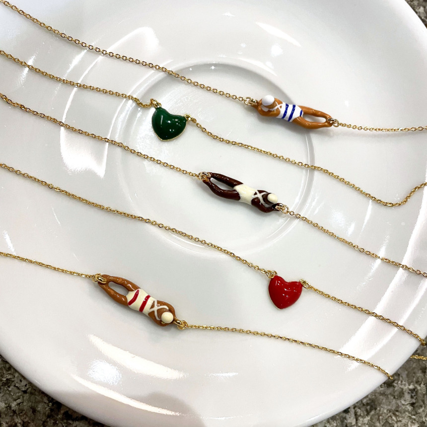 하트레드/그린 + 테니스라켓 목걸이와 연출
