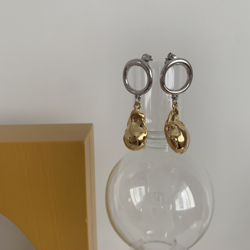 네추럴 골드 스톤 진주 형태 드랍 귀걸이 콤비도금은